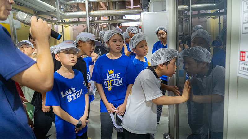 活動伊始,研學營的師生們(men) 便被金貓咖啡生產(chan) 車間及產(chan) 品包裝車間的現代化氣息深深吸引。整潔有序的生產(chan) 線上,每一粒精選咖啡豆都經過了嚴(yan) 格的篩選、精細烘焙。規範的生產(chan) 工藝和高度的自動化作業(ye) 不僅(jin) 展示了金貓咖啡對品質的堅持與(yu) 追求,也讓師生們(men) 對現代食品生產(chan) 流程有了更加直觀和深刻的認識。